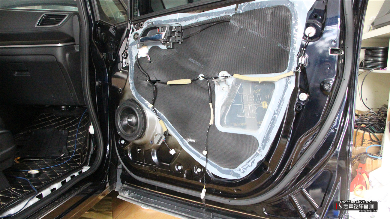 为了给汽车的声场喇叭创造一个良好的工作环境,改装技师使用中道环保隔音材料对汽车的四门板做了双层的隔音处理。一层是中道Q-mat顶级减振产品,一层是中道Q-liner顶级隔热吸音垫。使得扬声器的音色更加清晰透彻。