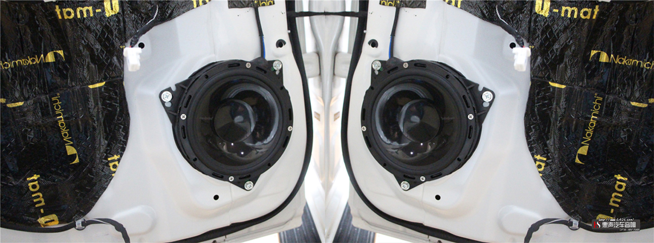 车四门第二层采用中道Q-mat顶级减振产品起到有效的止振作用。, 使得扬声器的音色更加清晰透彻。