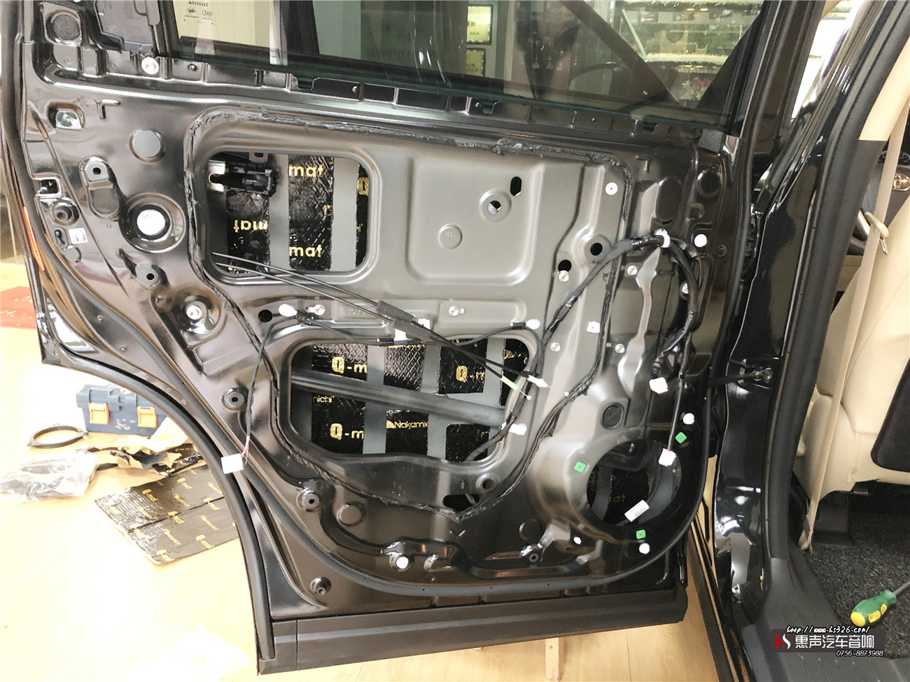 车四门第一层使用中道Q-mat顶级减振分块满贴进行减振处理,有效抑制钣金抖动,强化钣金,减少噪音的产生和传递。