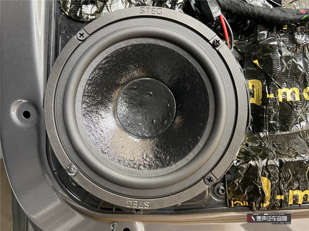前声场使用意大利STEG ME 650CIII二分频喇叭安装于车门板上。