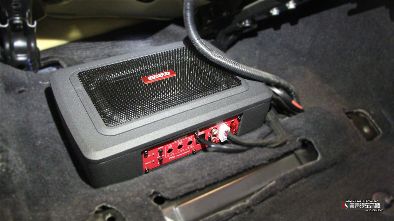 添加了一只爱威awave V7M超薄低音炮,安装在座椅底下不占车内空间,它可以有效的增加低音部分的下潜力度,从而让音乐在低频方面的表现更好,也让音乐更具有力量感。