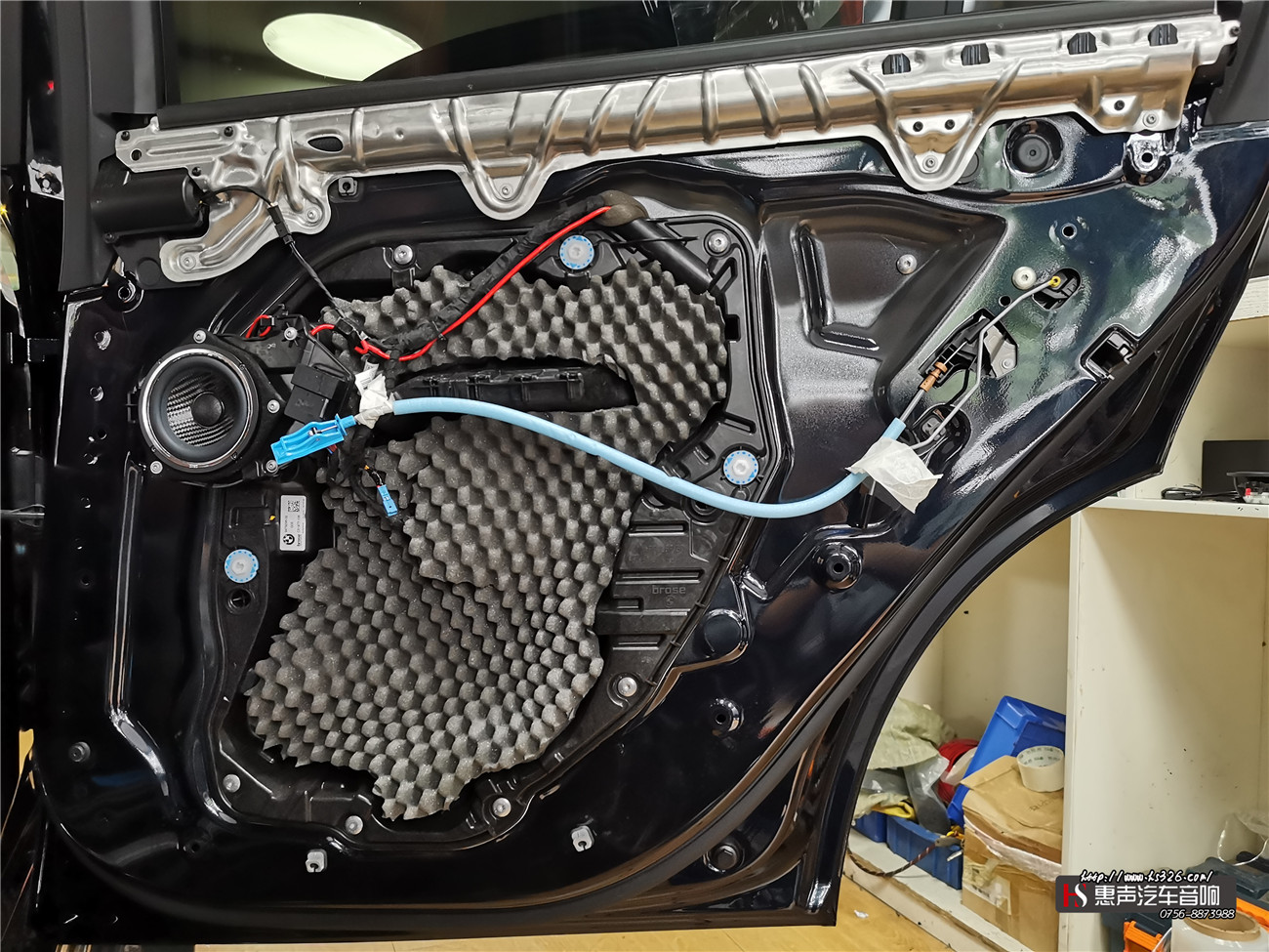 宝马x7车主为了追求更完美的音质,来到珠海惠声汽车音响对爱车再次升级意大利STEG顶级MSS系列喇叭,
